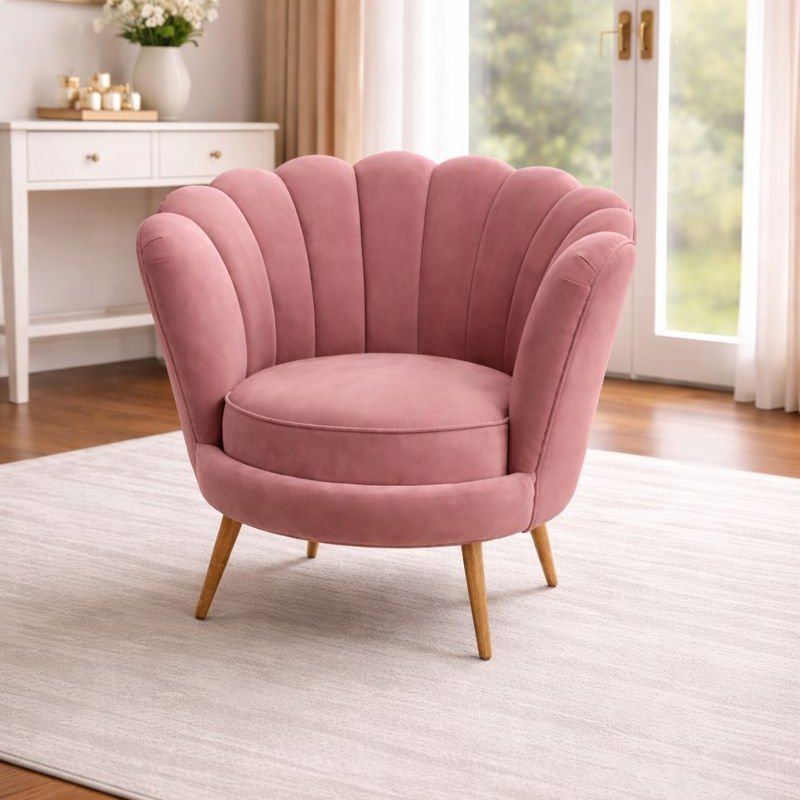 Curved Petal Back Upholstered Accent Lounge Chair
