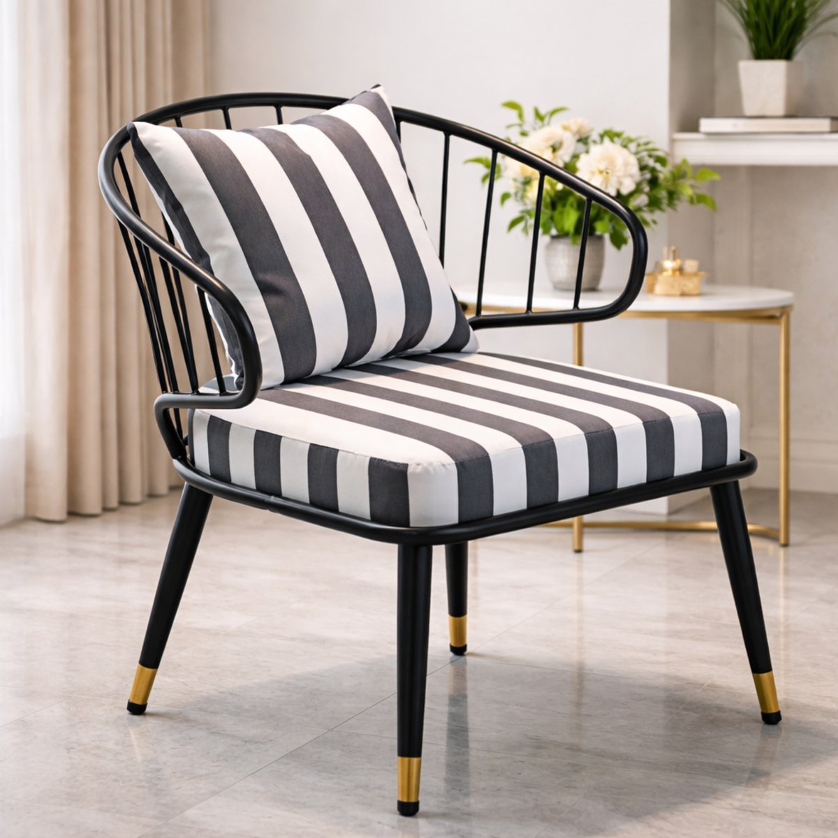 Striped Upholstered Accent Chair with Curved Metal Frame