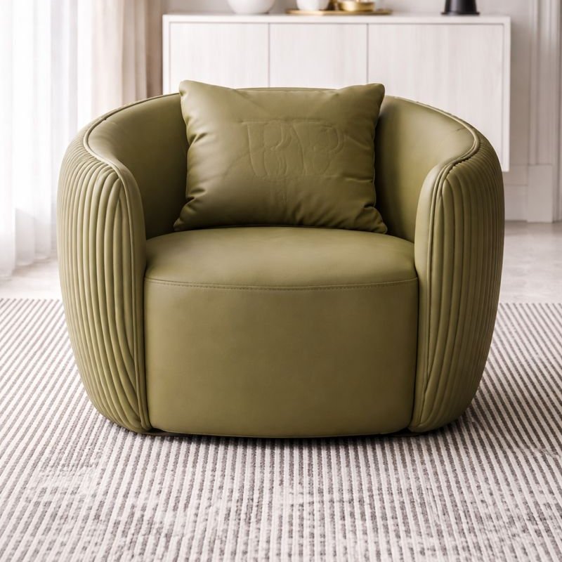 Curved Barrel Upholstered Lounge Chair with Ribbed Back Design