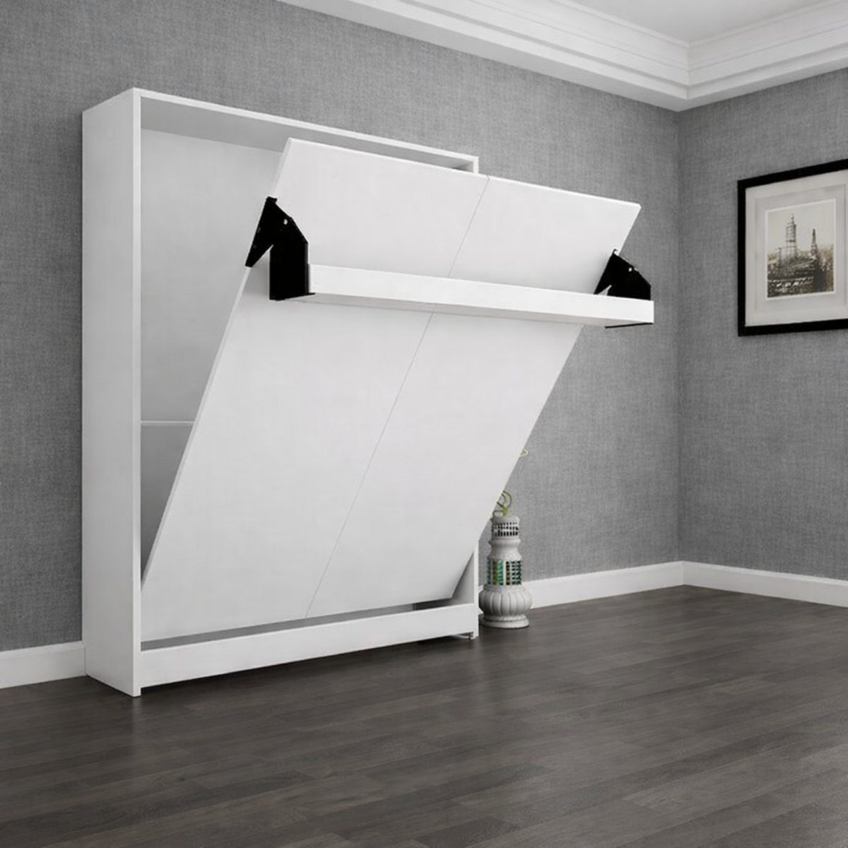 Vertical Wall-Fold Murphy Bed Frame with Minimal White Cabinet Finish