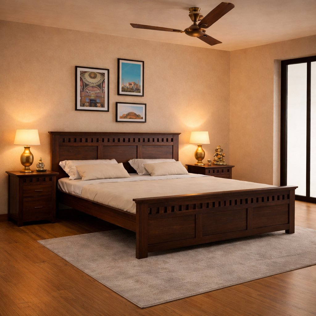 Premium Solid Wood Canopy Bed Frame with Lattice Panels & Statement Back Panel