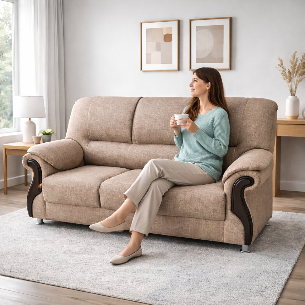 Built for durability and long-term use, the sofa is supported by a sturdy wooden internal frame that ensures excellent structural stability. The premium fabric upholstery enhances both comfort and visual appeal, making this sofa easy to coordinate with coffee tables, side tables, and a wide range of interior décor styles. Ideal for family living rooms, lounges, or formal seating areas, it combines relaxed comfort with dependable craftsmanship.