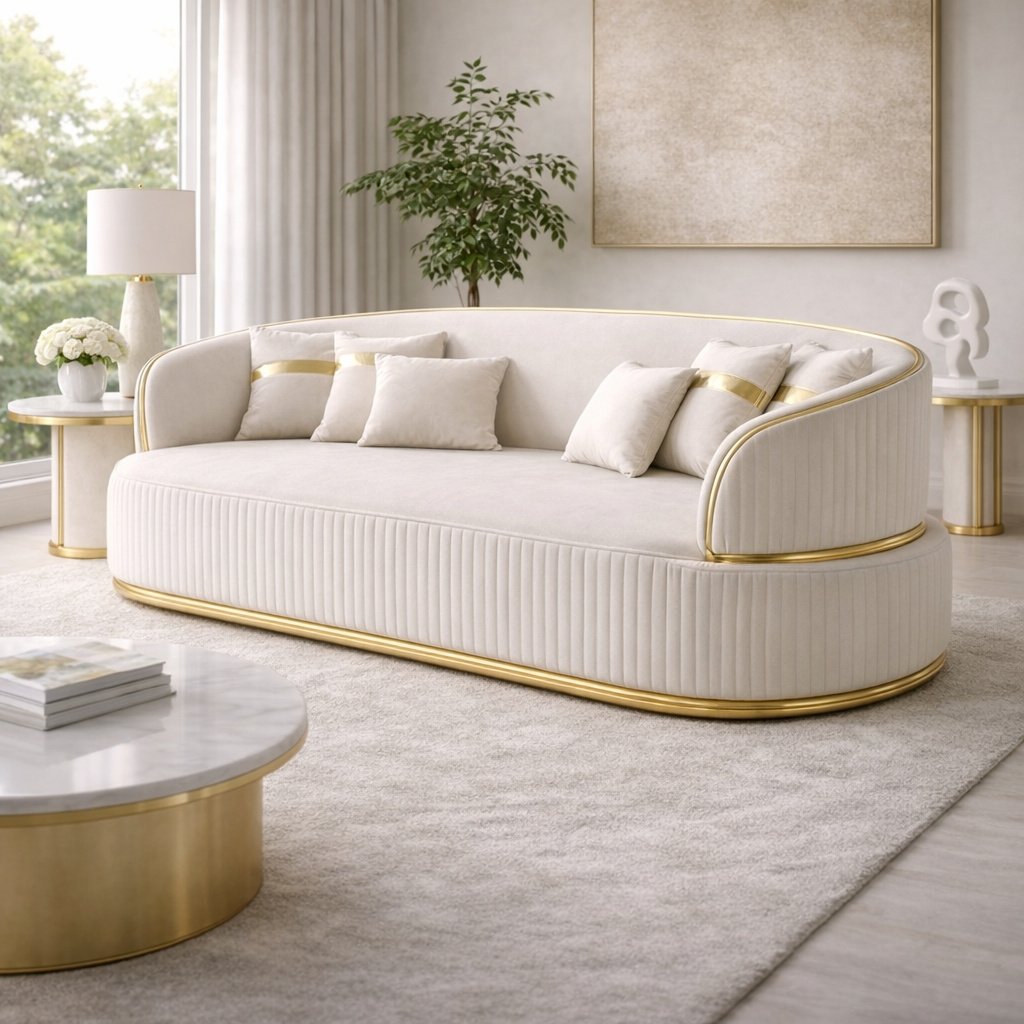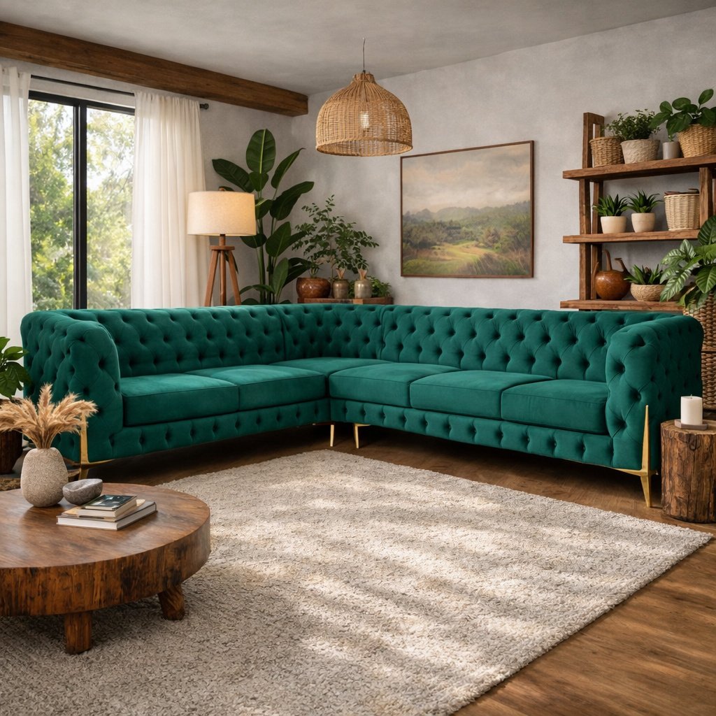 Luxury Tufted L-Shape Sectional Sofa with Gold Legs