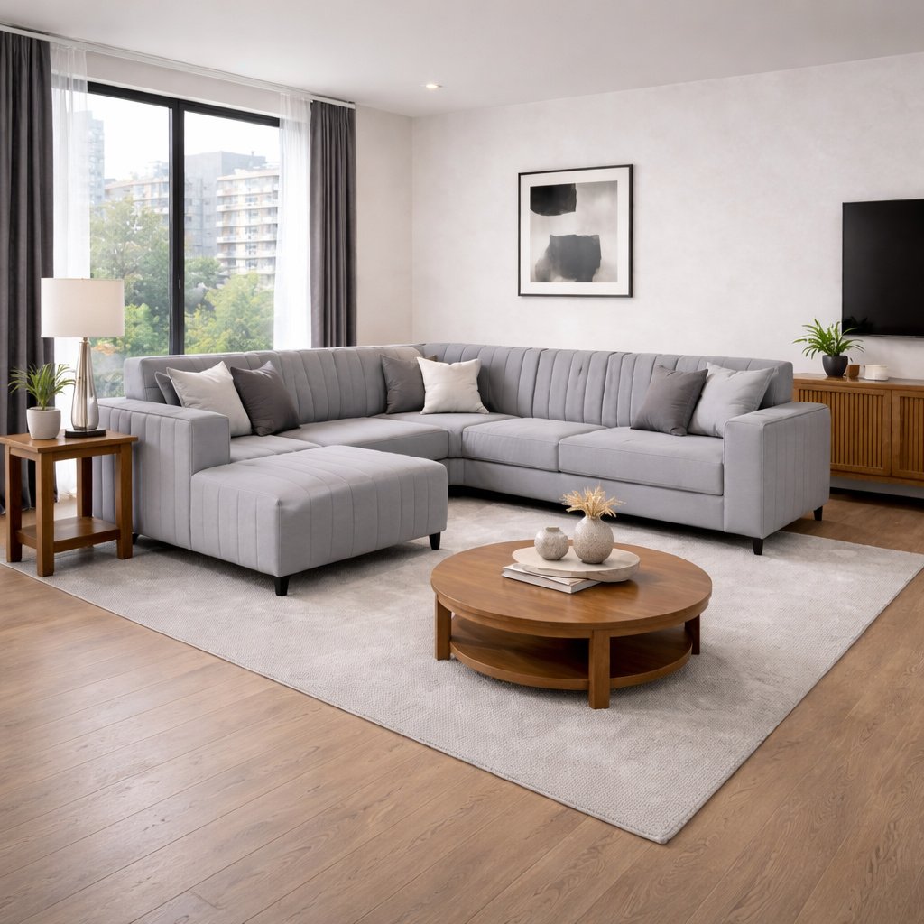 Modern Luxury L-Shape Fabric Sofa with Vertical Channel Tufting