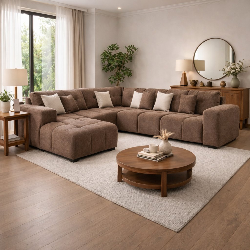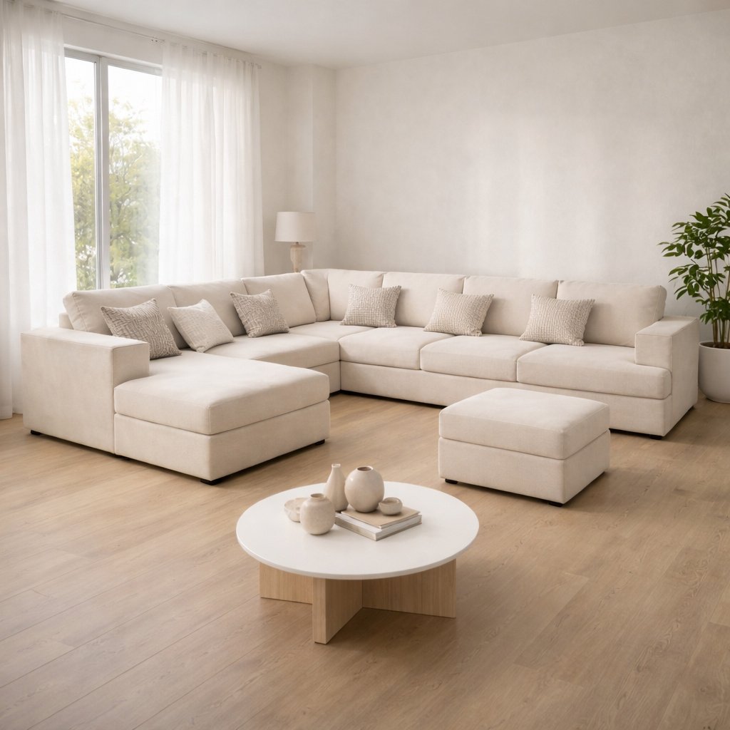 Luxury Modular L-Shape Fabric Sofa with Ottoman