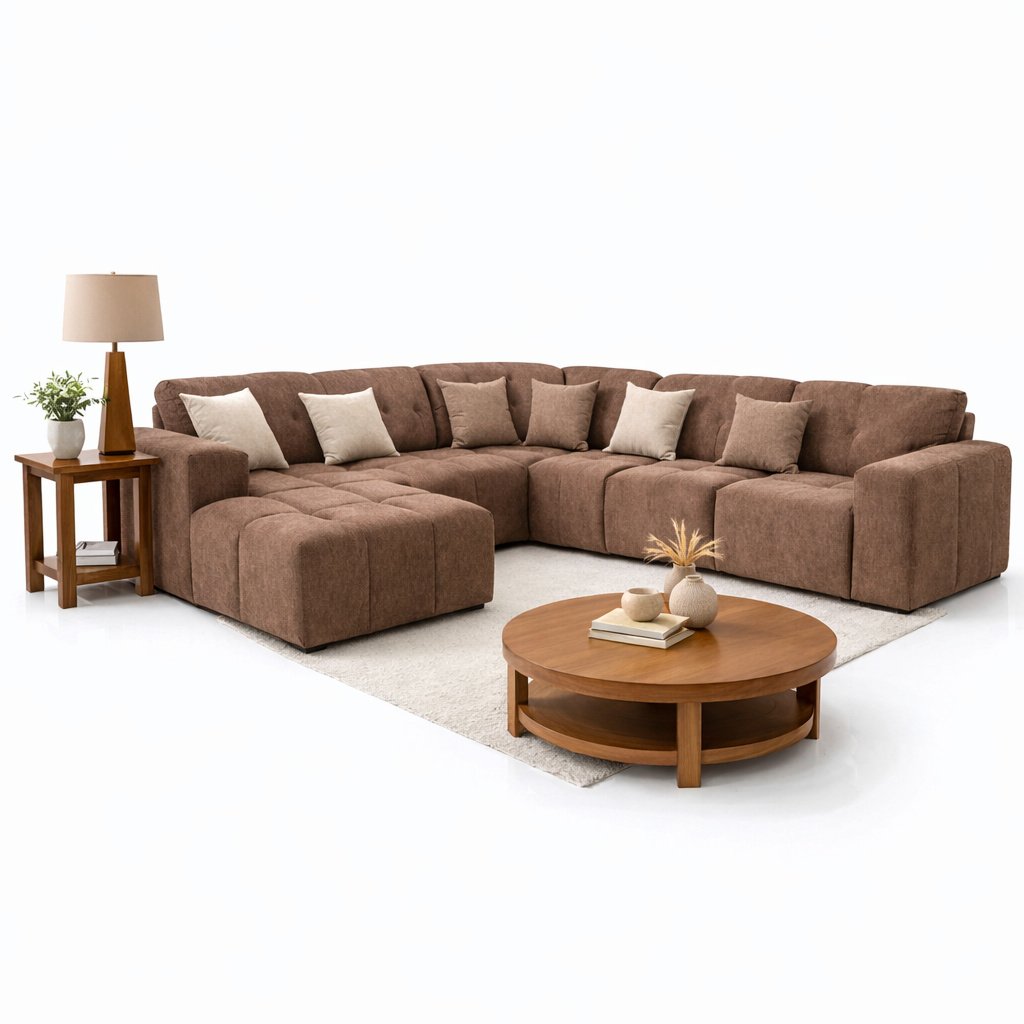 ₹92309 35% OFFDesigned for relaxed luxury and contemporary comfort, this plush modular sectional sofa features a deep-seated L-shaped configuration with generously cushioned seating and a soft, textured fabric finish. The wide armrests, tufted seat detailing, and inviting neutral tone create a warm, sophisticated presence that blends seamlessly into modern, transitional, and cozy living spaces.